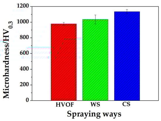 Microhardness of WC-17Co coatings formed by various spraying methods.