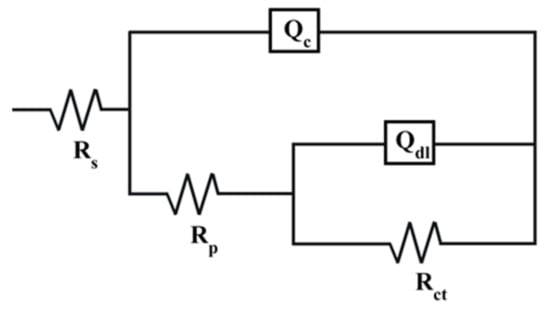 Electronic equivalent circuit used in the fitting procedure of the EIS data.
