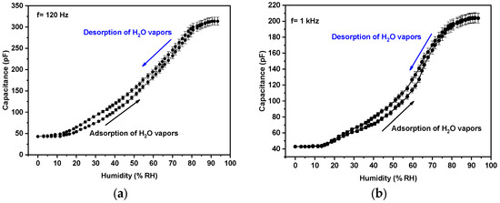 - Najeeb, M.A.; Ahmad, Z.; Shakoor, R.A. Organic thin-film capacitive and resistive humidity sensors: A focus review. Adv. Mater. Interfaces 2018, 5, 1800969. [Google Scholar] [CrossRef]