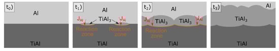 - Thiyaneshwaran, N.; Sivaprasad, K.; Ravisankar, B. Nucleation and growth of TiAl3 intermetallic phase in diffusion bonded Ti/Al Metal Intermetallic Laminate. Sci. Rep. 2018, 8, 16797. [Google Scholar] [CrossRef] [PubMed]