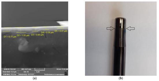 A two-layer coating was made on the instrument by the PVD method using magnetron sputtering (HIPIMS). The working parameters are shown in Table 2 [47].