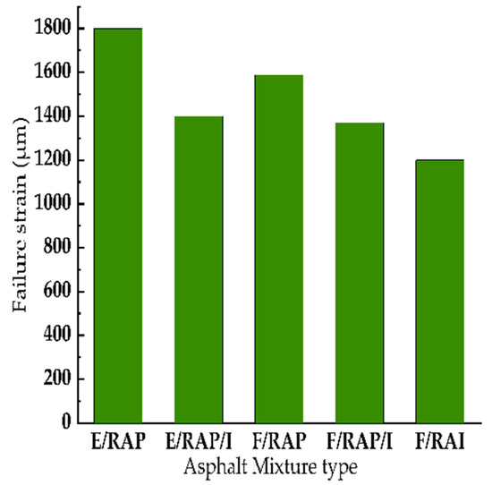 For evaluating the low temperature cracking resistance, the small size beam samples were fabricated. Figure 10 shows the failure strain results of different CRMs.