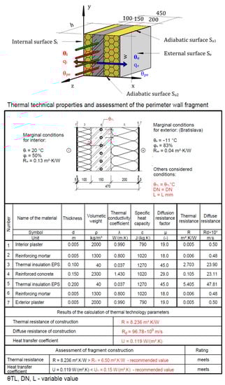 The novelty of the research described in this study lies in the innovation of the design of the envelope panel with a thermal barrier. Partial results of our research have been published in several scientific articles and are also part of three utility models (UM SK 5749 Y1, [], UM SK 5729 Y1, [], and UM SK 5725 Y1, []) and one European patent (EP 2 572 057 B1, []).