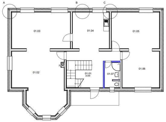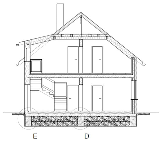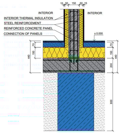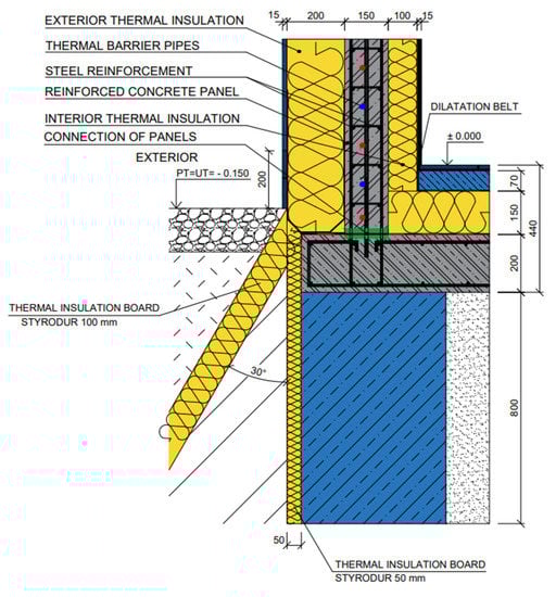 The building walls are made of assembled prefabricated panels, which were subsequently insulated with a contact insulation system. The walls with a thermal barrier were designed with thermal insulation on both sides: 100 mm thermal insulation in the interior and 200 mm in the exterior.