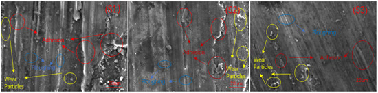 SEM images of worn morphologies of the (S1) primal sample; (S2) USRP sample; (S3) USRP + HELL sample.
