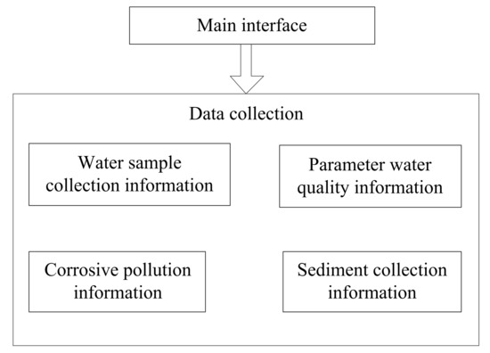 The client of the entire system is mainly divided into five functions: environmental monitoring sample data collection, function parameter configuration, data synchronization, various tool integration, and environmental monitoring task configuration [23,24,25]. Among them, environmental monitoring sample data collection is classified according to various types of monitoring information, including marine water quality data collection, marine mineral data collection, marine microbial organism data collection, and marine meteorological data collection. Each data collection package sets different types of keys. It also performs synchronous interaction in the data center to complete the issuance of collection commands and the upload of collected data [26].