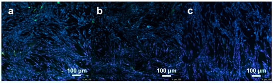 Samples were placed in well plates seeded with green fluorescent protein (GFP) fluorescent protein-transfected rabbit bone marrow mesenchymal stem cells and incubated at 37 °C for 7 days. The well plate was taken out and washed twice with PBS solution, and then 1 mL of 2.5% glutaraldehyde was added to each well and allowed to stand at room temperature for 10 min. After washing twice with PBS solution, 1 mL of 4′,6-diamidino-2-phenylindole (DAPI) was added, left to stand for 5 min at room temperature, and after being washed twice with PBS solution, the growth of cells on the surface of the sample was observed under a laser confocal microscope.
