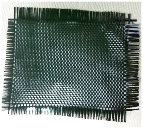To form polyamide 6, ε-Caprolactam (DSM, Heerlen, The Netherlands) was used as a monomer. Sodium metal (Daejung Chemical & Metals Co., Ltd., Siheung-si, Korea) and hexamethylene diisocynate (Wako Chemicals, Wako-Shi, Japan) were used as the catalyst and the activator, respectively. For the reinforcement, plane carbon fabric (MUHAN COMPOSITES, Gwangju-si, Korea) with a tow of 3 K (3 thousand filaments per tow) was used (Figure 1), and the properties of the fabric are shown in Table 1.