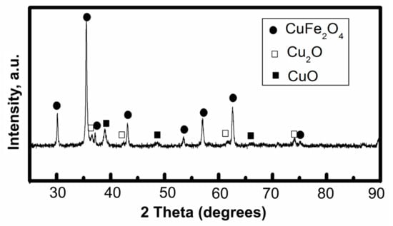 - Özdemir, Z.G.; Kılıç, M.; Karabul, Y.; Mısırlıoğlu, B.S.; Çakır, Ö.; Kahya, N.D. A transition in the electrical conduction mechanism of CuO/CuFe2O4 nanocomposites. J. Electroceramics 2020, 44, 1–15. [Google Scholar] [CrossRef]