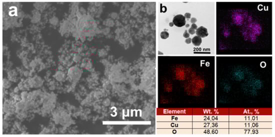 - Elayakumar, K.; Manikandan, A.; Dinesh, A.; Thanrasu, K.; Raja, K.K.; Kumar, R.T.; Baykal, A. Enhanced magnetic property and antibacterial biomedical activity of Ce3+ doped CuFe2O4 spinel nanoparticles synthesized by sol-gel method. J. Magn. Magn. Mater. 2019, 478, 140–147. [Google Scholar] [CrossRef]