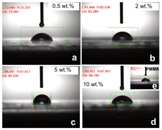 | Sample | PMMA | 0.5 wt.% NPs | 2 wt.% NPs | 5 wt.% NPs | |