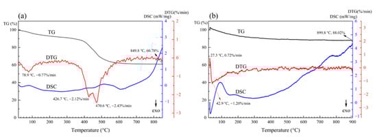 The TGA results of the coatings: (a) chromium-free semi-inorganic coating and (b) chromium-free inorganic coating.