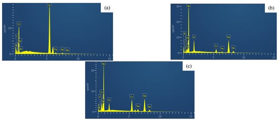 As shown in Figure 8, the EDS patterns (a)(b)(c) of the crack fracture correspond to labels (I)(II)(III) in Figure 7c, respectively. Combined with the chemical composition analysis in Table 2, labels (I)(II)(III) are hard Cr-rich precipitates, and eutectic and amorphous phases, respectively. These high hardness Cr-rich precipitates and eutectic phases provide easy routes for crack initiation and propagation.