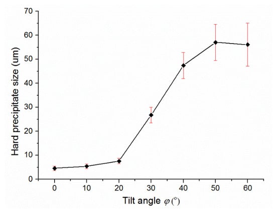 Influence of substrate tilt angle on hard precipitate size.