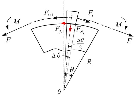 As shown in Figure 2, the contact area between the micro-unit and the arc surface of the mold is . According to the formula of shear stress , the frictional shear stress and tensile stress of the i-th micro-unit can be obtained as follows: