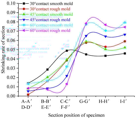 4.1.3. Effect of Contact Mold Angle on Cross-Sectional Shrinkage Rate