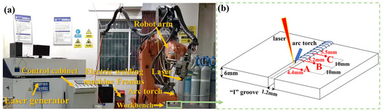 (a) Welding system, (b) Schematic diagram of the thermal cycle sampling point for the plate butt welding.