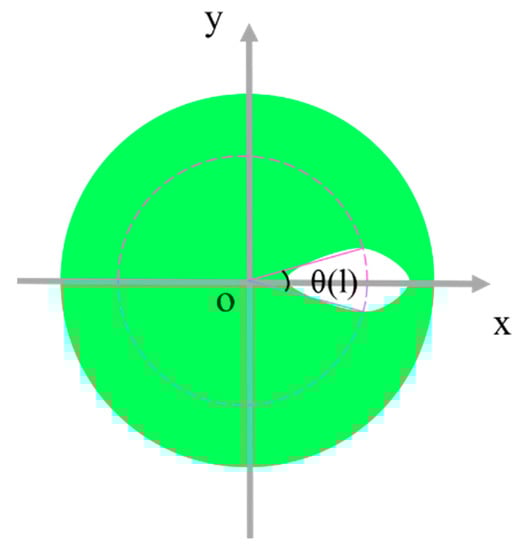 A rectangular coordinate system in which the origin is the center o of the mask is built as shown in Figure 6. The opening angle at radius l on the mask is , which can be expressed as: