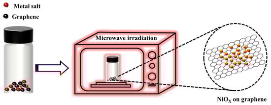 Illustration of the microwave synthesis of the NiOx@graphene composites.