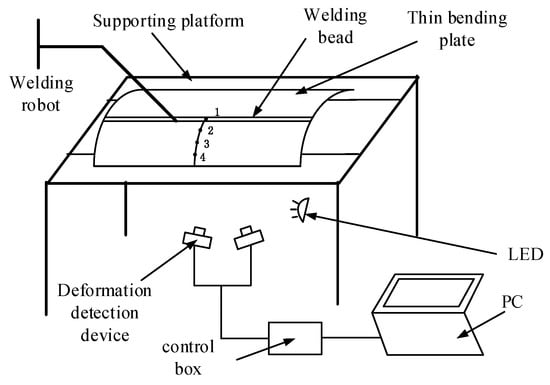 The thin bending plate welding structure is widely employed in shipbuilding, automobile, aerospace, and other industries and is one of the main ways to effectively realize lightweight manufacturing. Because welding is a high-temperature forming process, the influence of high temperature, large deformation, and high-brightness arc light must be considered when measuring deformation. As such, current welding deformation detection tests do not yield satisfactory results.