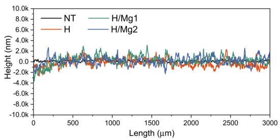 Before the electrochemical deposition of the HAp-based coatings doped with Mg in different concentrations, the cp-Ti surface was modified through anodic oxidation in 0.5 wt.% HF solution by applying a constant voltage of 20 V for 30 min with a DC power supply system (model N5771A, Keysight, Böblingen, Germany). The anodized cp-Ti surfaces were annealed at 450 °C for 2 h in air, using a heat treatment furnace (N17/HR model, Nabertherm, Lilienthal, Germany) [96].