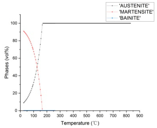 Carburizing heat treatment is a type of chemical heat treatment. When carbon is diffused into the steel surface through carburizing heat treatment, martensite will form during subsequent quenching. The formation of a hard superficial layer leads to the improvement in wear and fatigue properties due to the hardening with a compressive state on the surface [3,4,5]. In addition, discovering the accurate physical model is difficult [6,7]. As computer technology is constantly progressing, it has been used to analysis the microstructure and stress of the materials after heat treatment. Nowadays, CAE has been used in the designation of new materials or new alloys, simulation of the process of research, and observation of the microstructure and composition. Multiple CAE methods including thermodynamic analysis and the finite element method are used to calculate the microstructure and the property of materials. Some researchers [8,9,10,11,12,13,14] have proposed several numerical simulations using the finite element method (FEM) to solve this problem. Consequently, the use of numerical simulation with thermal-mechanical-metallurgical coupling is essential to achieve a better understanding of the effects of quenching heat treatment on the quality of cooled parts, allowing for the evaluation of properties that cannot be measured experimentally. Based on the above research, the present work aims to use the combination of various CAE methods, using the method of cyclic iteration, the material properties, and temperature field, and the precision of microstructure calculation is improved.