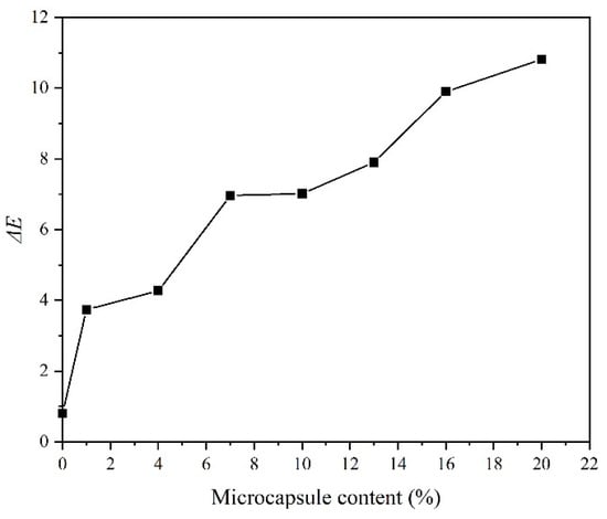 Chromaticity value and color difference of the coatings with different microcapsule content.