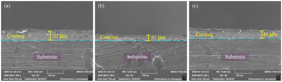 SEM images for the cross-section. (a) E1 sample; (b) E2 sample; (c) E3 sample.