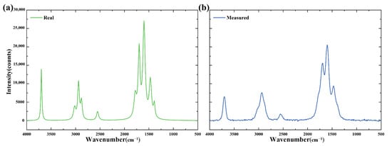 Simulated real and measured Raman spectrum. (a) Real Raman spectrum. (b) Measured Raman spectrum.