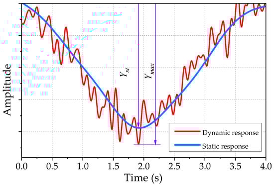 Since it is difficult to get the static response, it is typically replaced by the equivalent mean response () from the dynamic response curve [], as shown in Equation (3). DLA by this method is denoted as experimental DLA, and the details are shown in Figure 3.