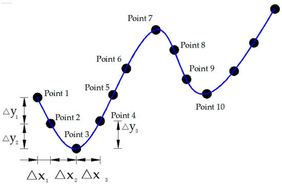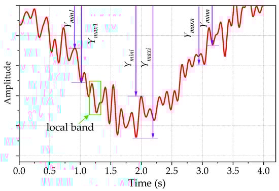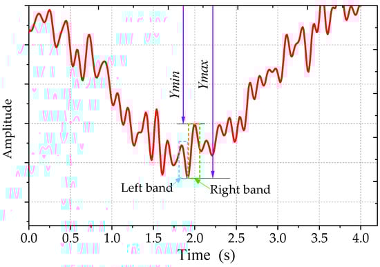 The WAM, which we proposed, takes per wave crest corresponding to its wave trough as a local band, divides the obtained dynamic response (time-history curve) into a finite number of units, and then weights each unit according to its participation [], as shown in Figure 4 and Equations (4)–(7). The DLA from the WAM was denoted weighted DLA. The calculation process is expressed as follows: