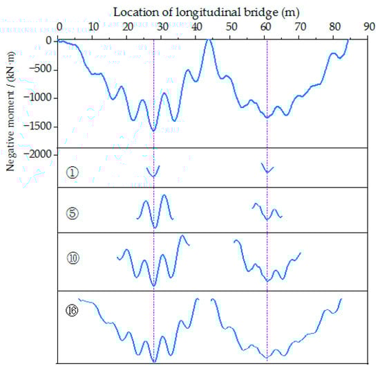 - Then, the normalized standard deviations with the same number in different time-history curves are added to obtain the offset moment (Equation (18)), and the calculation results are shown in Figure 15.