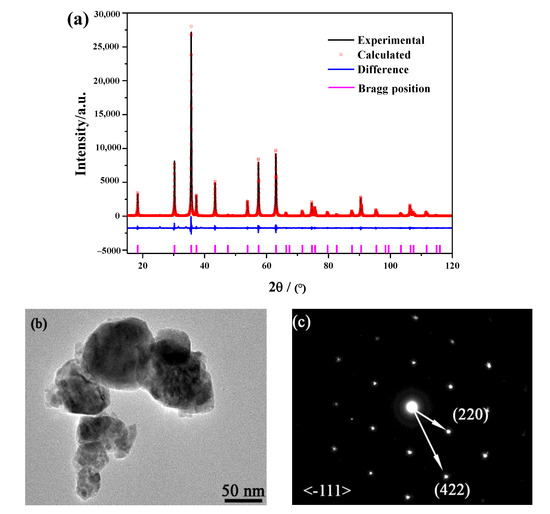 For Rietveld refinement, the data were collected through a step-scan mode over the 2θ range of 15°–120°, using a step interval of 0.02° and a counting time of 1 s per step. TOPAS 4.2 software was carried out for the Rietveld refinement of the XRD patterns.