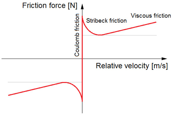 Graph illustrating the friction model based on the Stribeck effect with viscous friction.