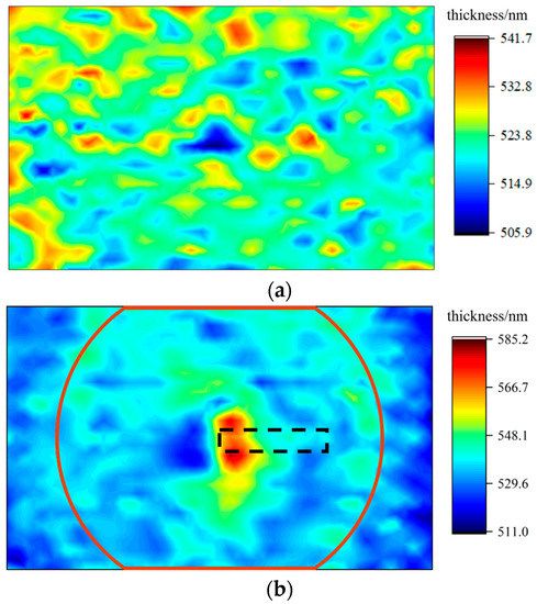 - Yan, Y.; Li, J.; Liu, Q. Evaporation effect on thickness distribution for spin-coated films on rectangular and circular substrates. Coatings 2021, 11, 1322. [Google Scholar] [CrossRef]