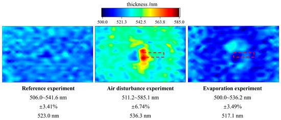 - The film thickness uniformity was improved significantly by inhibited solvent evaporation, and the uniformity effect of airflow disturbance was almost negligible in the verification experiment. Controlling evaporation is an effective method to suppress film thickness defects caused by airflow field disturbance and improve uniformity.