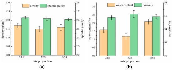Figure 3 shows the results of basic physic test, including density, specific gravity, water content, and porosity. The slurry with the mix proportion 3:2:5 has the minimum of the density, specific gravity and water content, which shows there are more pores in the slurry. So, the porosity of the slurry with 3:2:5 is the maximum among three slurries. The specific gravity decreases with the increase of the proportion of fly ash, other indexes do not. On the whole, the basic physical properties of the three slurries are close.