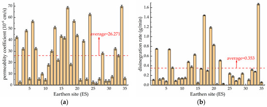 Water-physical properties of 35 site soils. (a) Permeability coefficient; (b) disintegration rate.