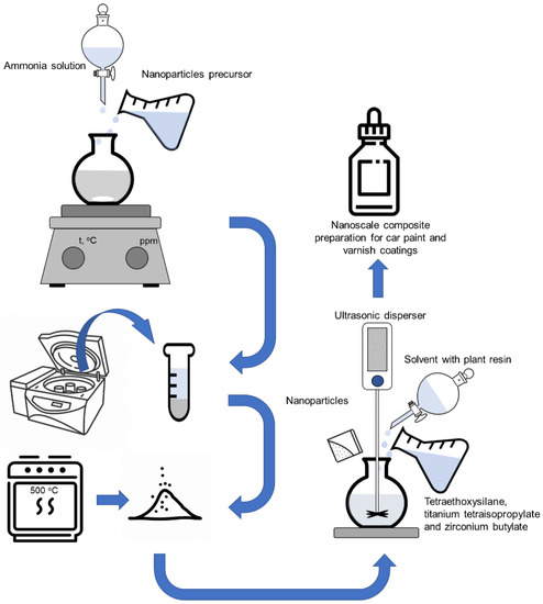 Our method of synthesis of nanoscale composite preparation for car paint and varnish coatings is shown schematically in Figure 1.