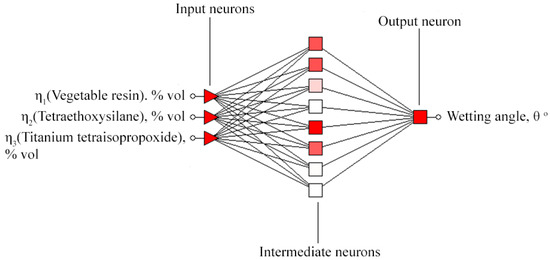 Statistical processing of the obtained data was carried out in the Statistica 12.0 software [27]. A package of application Neural Statistica Network software was used to construct the response surfaces [28]. The architecture of formed neural network is shown in Figure 3.