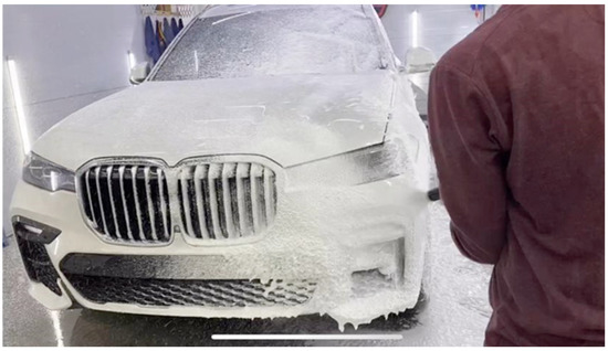 To test the developed preparation, we conducted an experiment with a BMW X6. The wetting contact angle on the treated paint of BMW X6 was greater than 120°, indicating the hydrophobic properties of the developed nanoscale composite protective preparation. Evaluation of the stability of the nanoscale composite protective coating to the washing process showed that the developed preparation is able to maintain its hydrophobic properties for more than 150 washing cycles. This indicates that the developed preparation has high potential for industrial use as protective composite coatings.