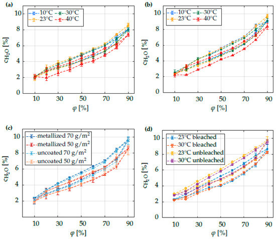 - Parker, M.E.; Bronlund, J.E.; Mawson, A.J. Moisture sorption isotherms for paper and paperboard in food chain conditions. Packag. Technol. Sci. 2006, 19, 193–209. [Google Scholar] [CrossRef]
