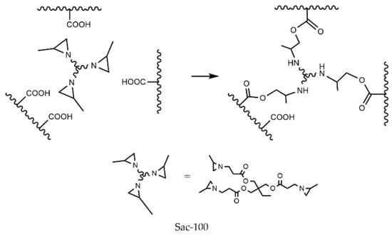 Aziridine can react with carboxylic groups to form amino esters. Figure 2 shows the reaction between Sac–100 and PUA chains with carboxylic groups, which results in the connection of three polymer chains.