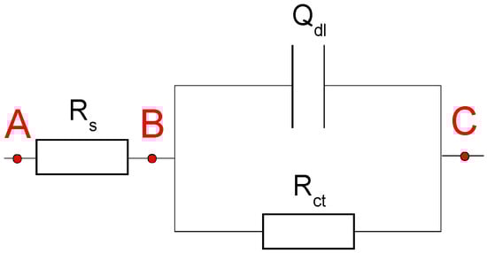where ER is the real value of the potential difference between B and C; EM is the measuring value of the potential difference between A and C; RS is the solution resistance, and i is the measuring current density. Thus, Equation (11) shows that the existence of the ohmic drop influences not only the shape of the polarization curve but also the values of the electrochemical parameters if the |i|RS value is large enough. To accurately evaluate the slopes of the Tafel straight lines, it is necessary to remove the contribution of the IR drop to the electrode potential. The EIS method is usually used to measure the solution resistance in corrosive fields. Table 2 gives the solution resistances of five solutions fitted using the EIS data.