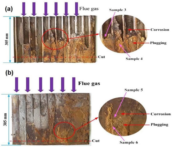 Effect of corrosion on (a) corrugated plate and (b) positioning plate of air preheater (lower portion) [].