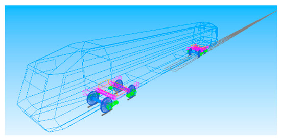 Following the analysis of wheel wear in various lines, the impact of wheel wear on vehicle dynamics is investigated further in this section of the paper. The commercial pro-gram Simpack creates a vehicle model based on characteristics taken from a high-speed train, as seen in Figure 8 and Table 2. Multi-body dynamics is used to create a vehicle model with two bogie subsystems that completely encompass nonlinear wheel-rail contact, and suspension parts. The carbody and frame, as well as the wheelsets, have six degrees of freedom, but the axle-box has just one degree of freedom, so the model has 46 degrees of freedom. Using the Kalker nonlinear creep and the Hertz contact theory, the creep force between the wheel and the rail is calculated. Hertz theory is used to solve the normal contact problem, and the creep force is estimated using the FASTSIM technique. The suggested friction coefficient between wheel and rail for running dynamics analysis is 0.4 (dry condition).