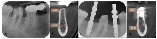 The use of dental implants has become a common treatment modality and an important component of modern dentistry [1]. In many clinical situations, the edentulous areas to be rehabilitated do not offer adequate bone volume for implant placement; this may be due to different causes, such as the presence of anatomical structures that limit it (maxillary sinuses, presence of nerves or vessels, etc.) due to early bone atrophy and the traumatic extraction of a tooth or periodontal disease [2,3]. Tooth extraction is associated with the remodeling of the alveolar process and results in changes, both structural and dimensional, with horizontal losses of up to 29%–63% and vertical losses of 11%–22% at 6 months after tooth extraction [4,5].