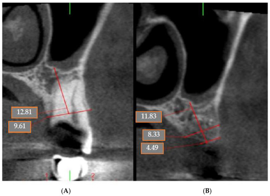 Laino et al. [33] studied the use of calcium sulfate as a graft in sinus lifts with a lateral window, obtaining good results, including a gain in bone height of more than 8mm, and these results coincide with those of other studies, such as that of Guarnieri et al. [42] who obtained a mean increase in bone height of 8 mm after 6 months and 2 years or that of Kher et al. [43], who reported a slightly greater gain of 10.31 mm. In our series of cases at 4 months, a bone gain of 6 mm and 9 mm was obtained depending on the area in the first case (Case No. 5) and 5.6 mm in the second case (Case No. 6). In the second case, the loss of more than 50% of bone height achieved was surprising when comparing the day of surgery with the follow-up after 4 months.