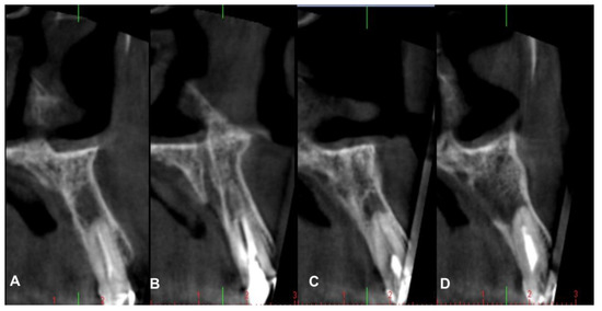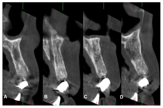 Postoperative CBCT after 4 months. (A) 12 (B) 11 (C) 21 (D) 22.