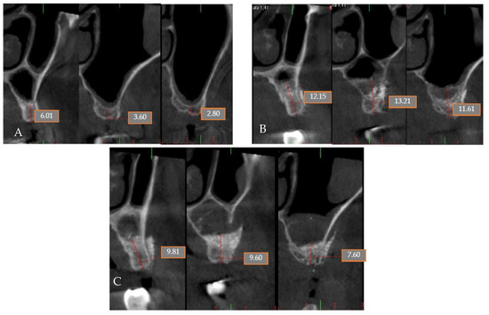 (A) Preoperative CBCT at level 24, 25, and 26; (B) Immediate postoperative CBCT at level 24, 25, and 26; (C) Postoperative CBCT after 4 months at level 24, 25, and 26.